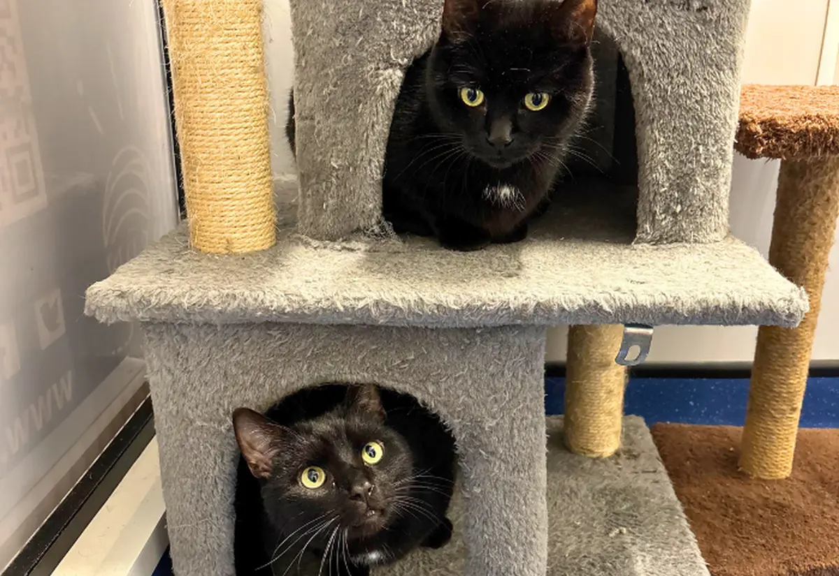 Lucien and Prudi are a very sweet pair of cats who are very closely bonded, they are hoping to find their new home together as they enjoy each others company and are often found curled up together on their cat tree.