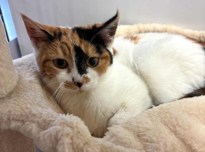 After spending time with our animal care team in our cattery, Oracle has shown she is extremely nervous of people, she is very independent and would be best suited to life on a farm or similar outdoor home, where she can roam freely and have a safe place to live - providing shelter, food and water.